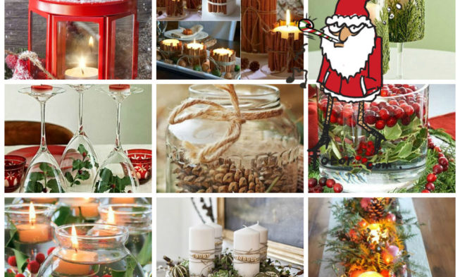 Insert them in tealights or candles and bigger ones in candlesticks – jars would make a snap licensed kitchen jars, glasses and all kinds fishbowl. Adding a Christmas ornament, pine, fir twigs, ribbons, etc. Create corresponding compositions within platters, trays or wooden boxes, use floating tea lights into flower vases or deep plates and as many natural materials and create stunning pieces for Christmas decoration of any point and the Christmas table. Anywhere you need … green don’t need to be natural spruce, you can use any type sprigs for larger compositions or rosemary for smaller.