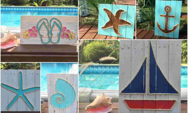 Pallet woods or any other type of raw plank, wooden slats, paint and varnish in any color you prefer, thick rope, nails and hotclue gun or a powerful general-purpose adhesive.Initially you will need to pass lightly with sandpaper the wood, if they have very wild side, and join them together to whoever formation and size you wish to have the final construction. After you put them on the back side on a stable surface and nailing vertical or horizontal slats, depending on the shape of the structure, with just nails. Usually two such slats are sufficient to hold fixedly a construction of this form of moderate to slightly oversized. If you find it necessary use more.